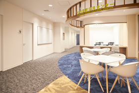 パレット柏の総合受付は施設の中央にあり、施設貸出し受付、市民ギャラリー受付、備品貸出し、予約管理等を行うほか、施設で実施する各種事業の企画運営を行います。