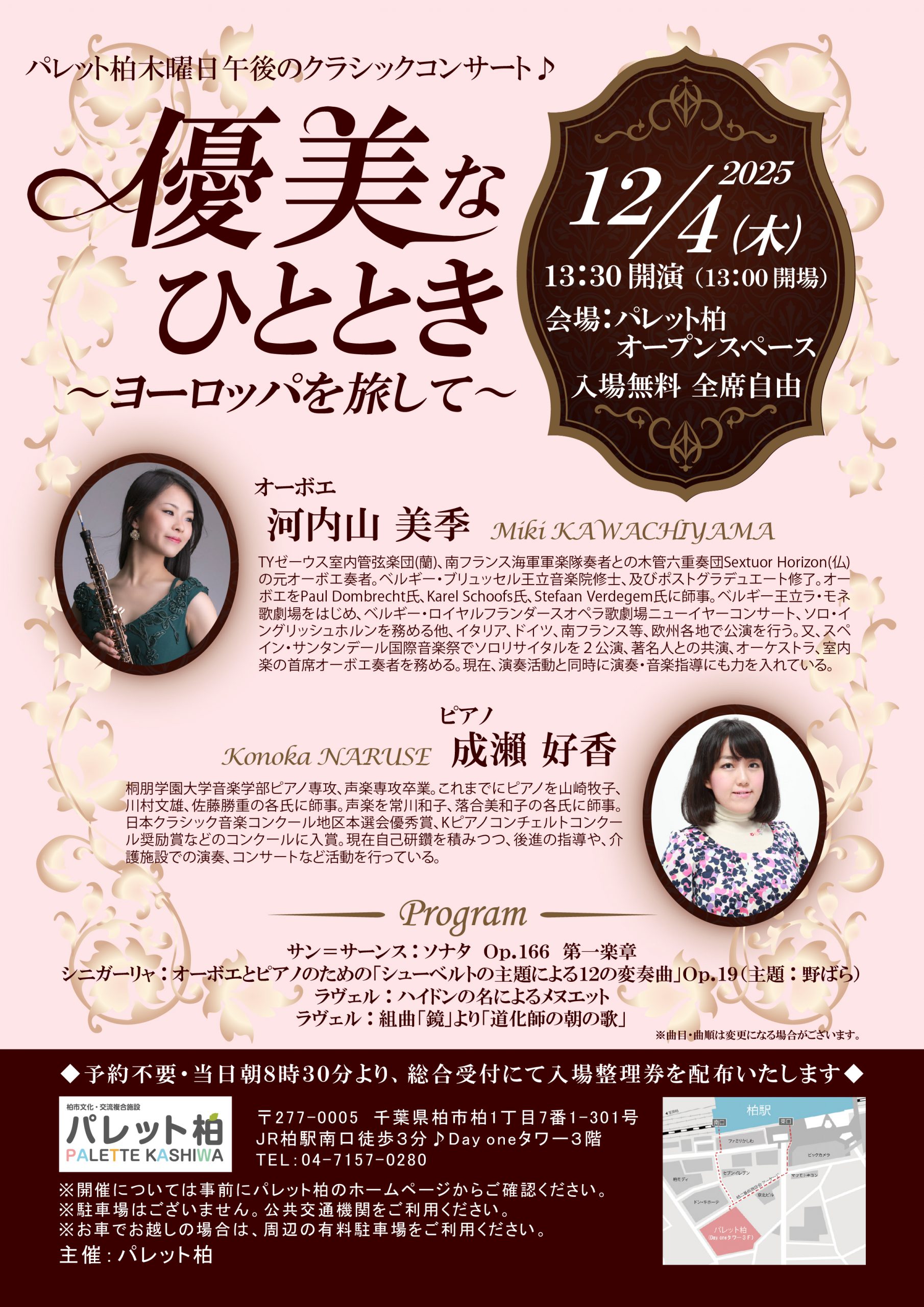 パレット柏の超大人気イベント 午後のクラシックコンサートです。