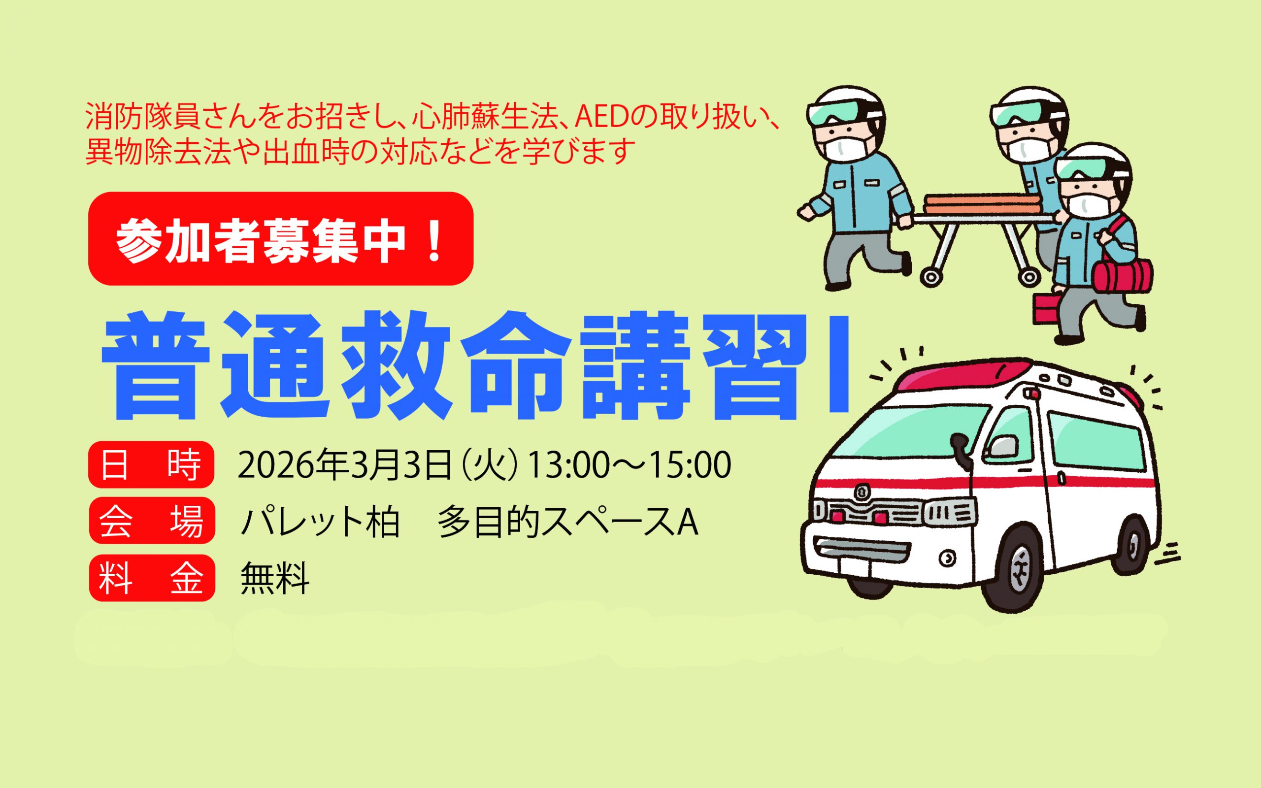 対象:柏市内在住、在勤、在学(中学生以上)で受講までにWeb講習会を受講可能な方