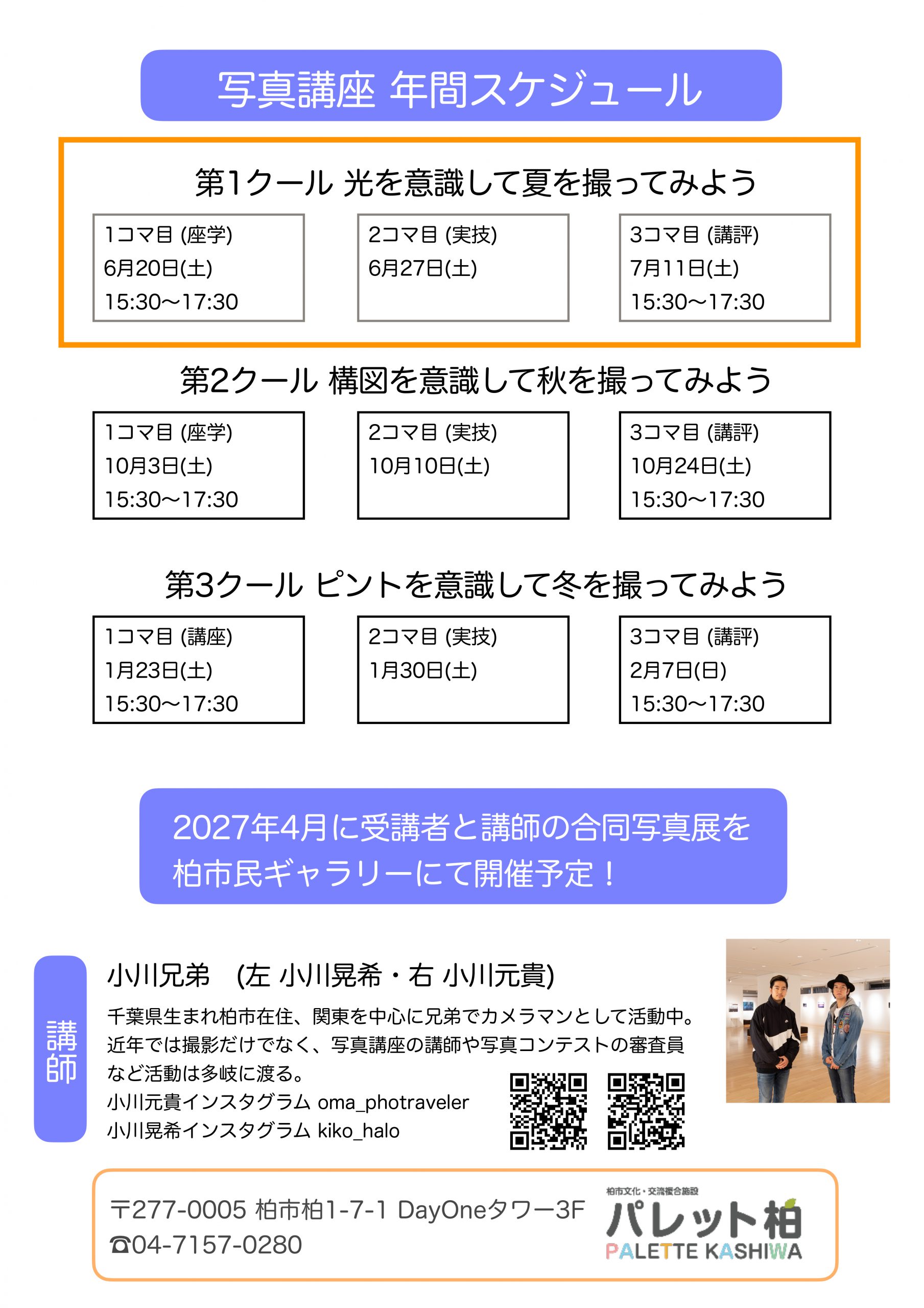 光、構図、ピントの3つをテーマに、柏市で活躍する写真家 小川兄弟を講師に迎え、