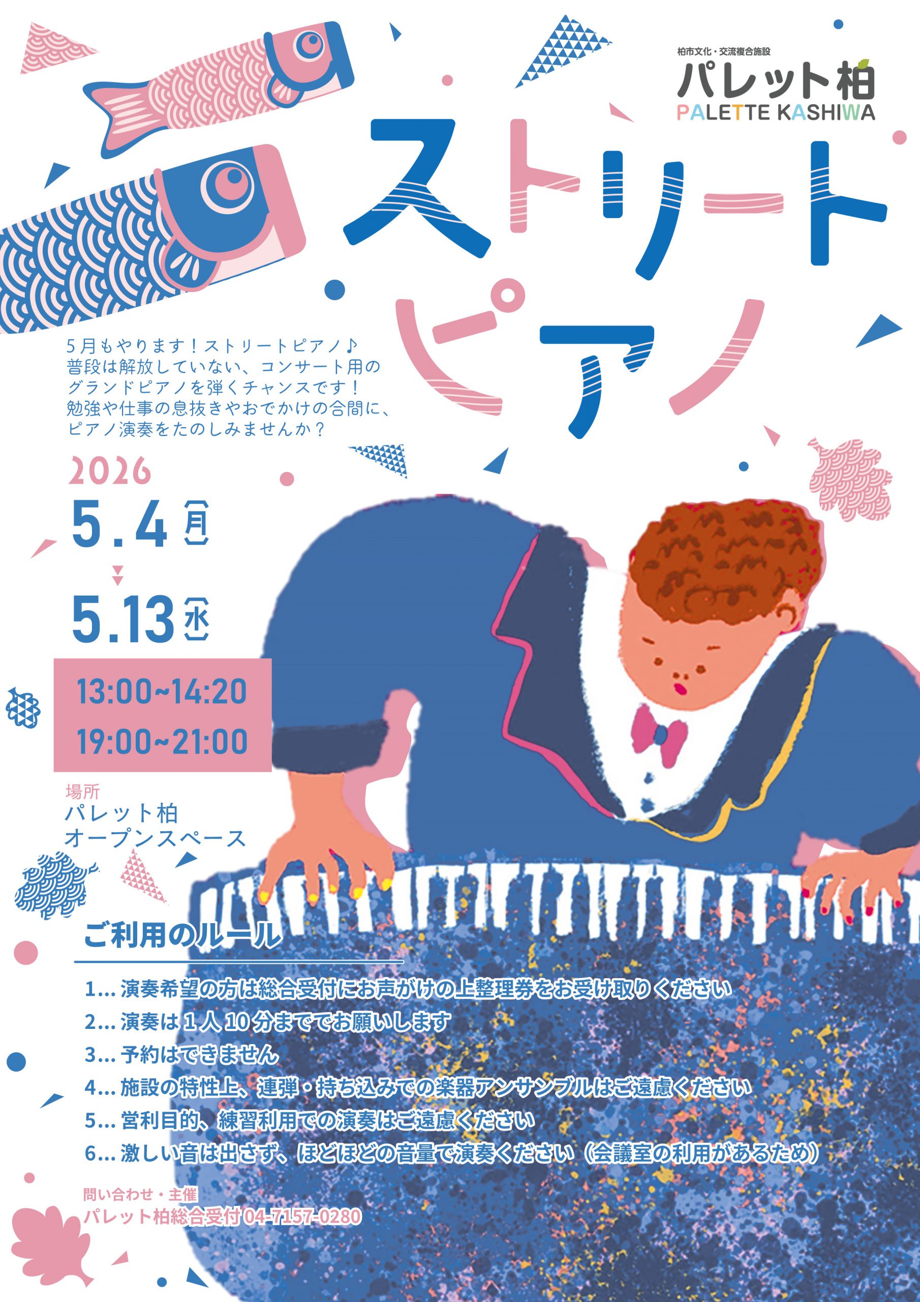 パレット柏オープンスペースの普段は解放されていないピアノを、