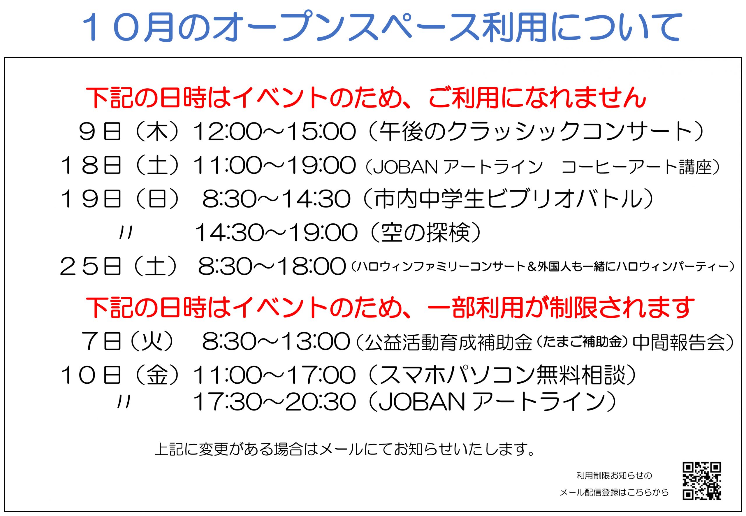 【10月】オープンスペースの利用制限について