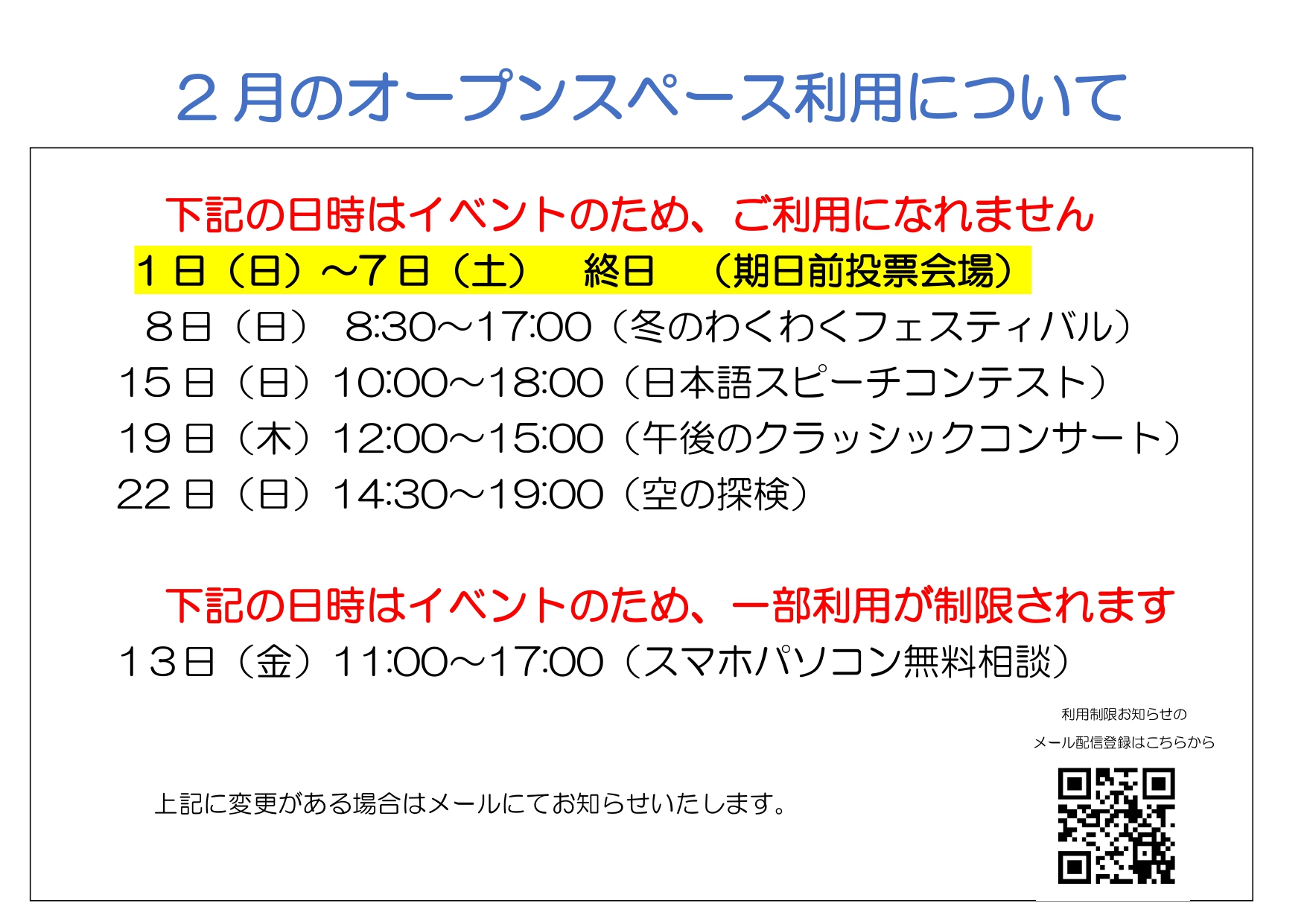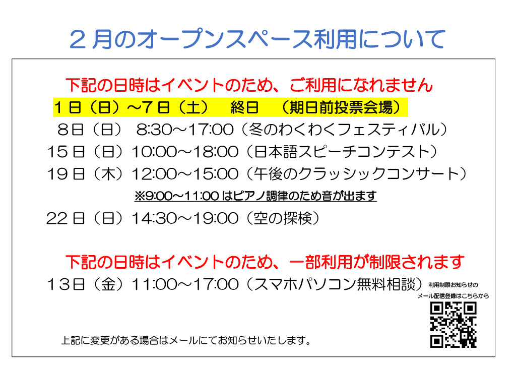 【2月】オープンスペースの利用制限について