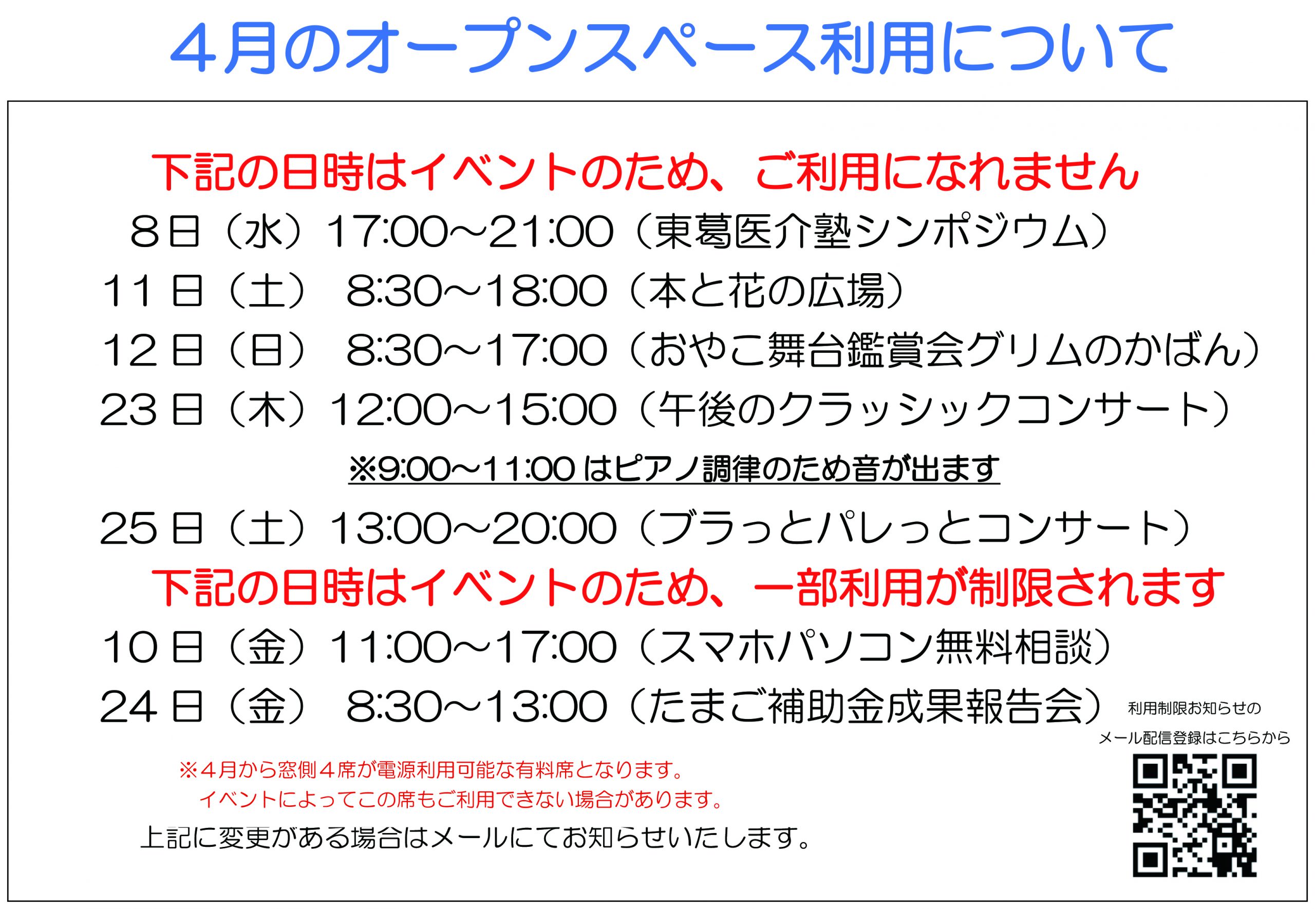 【4月】オープンスペースの利用制限について