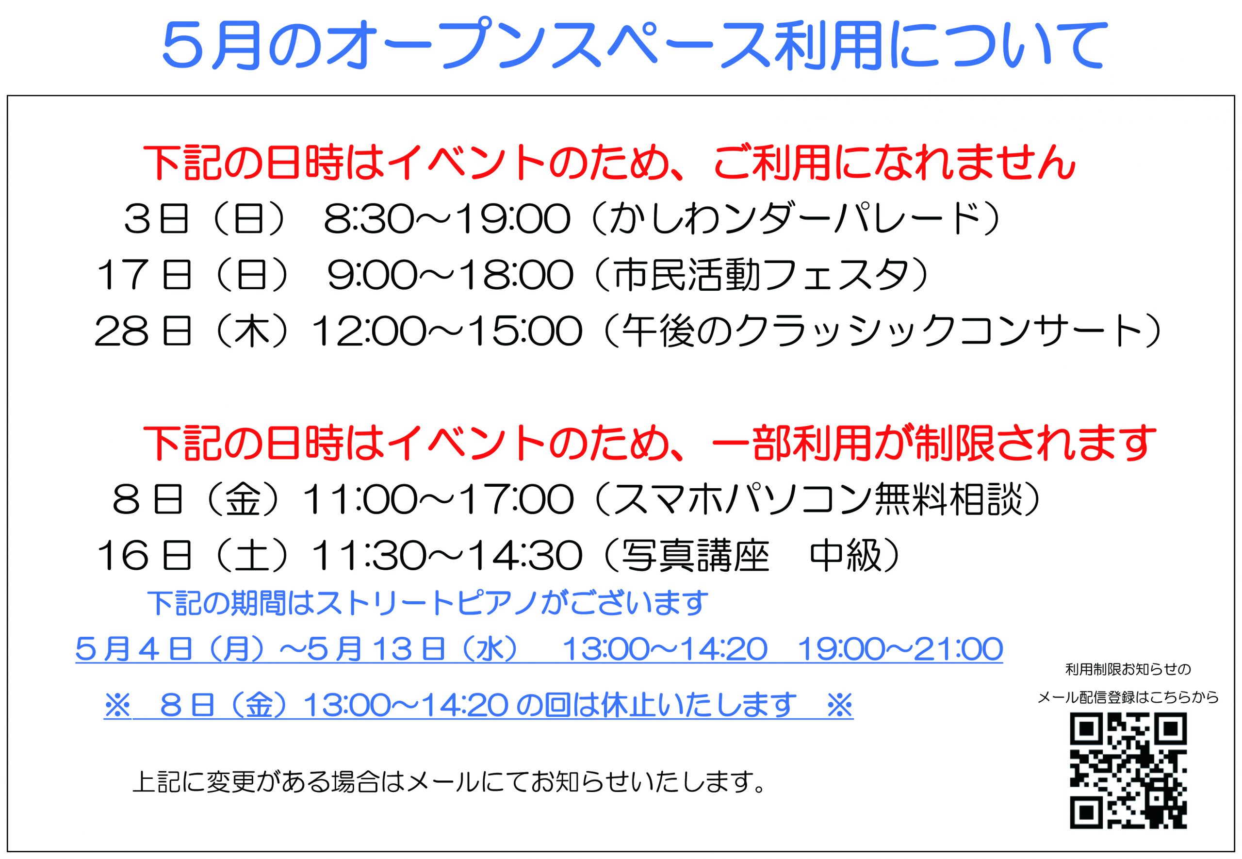 【5月】オープンスペースの利用制限について