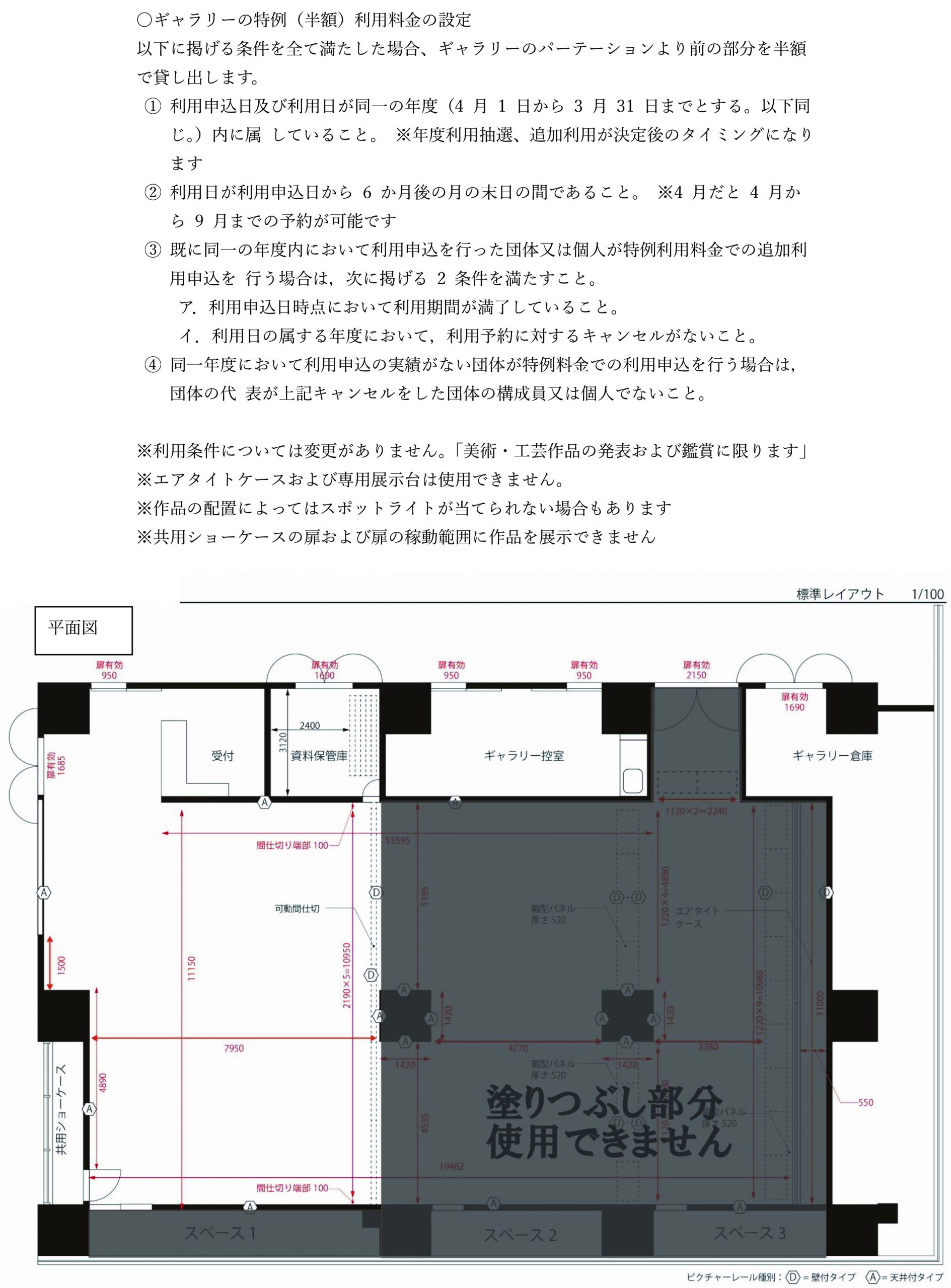 間仕切りを閉めた状態の入り口側半分のみ展示する場合に限り、利用料が半額になります。